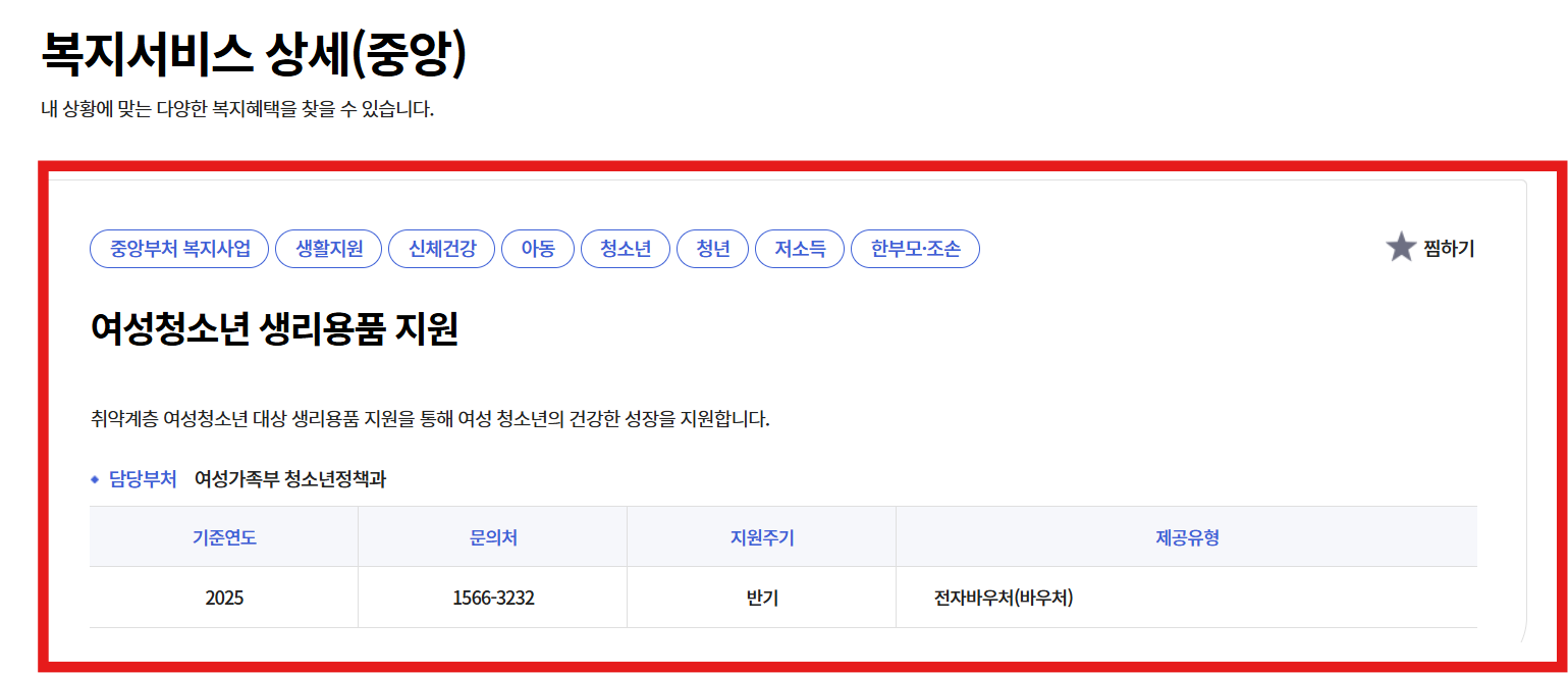 2025년 여성청소년 생리용품 바우처 지원사업은 취약계층에 해당하는