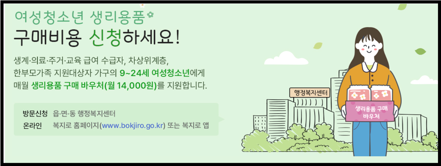 9세~24세 여성 청소년을 대상으로 월 14,000원의 포인트를 지원하여,