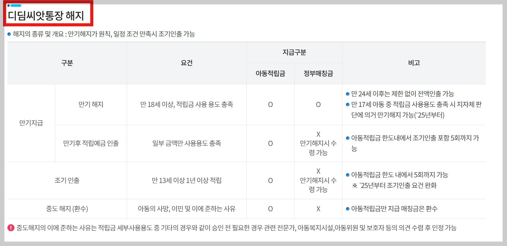 단, 해외 입양의 경우에는 중도해지 처리되며, 이때는 정부 매칭금이 환수됩니다.