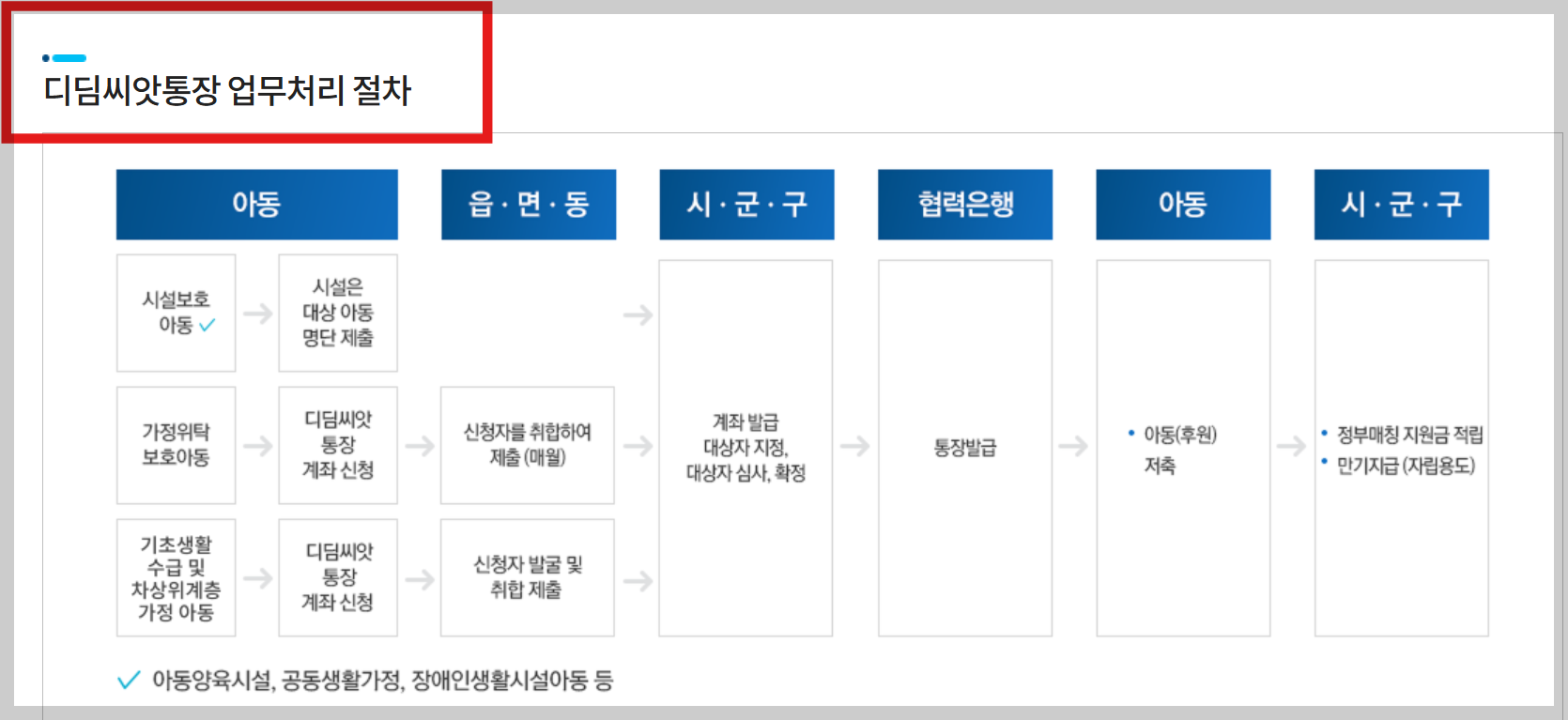 아이의 밝은 미래를 위한 현명한 선택, 지금 바로 가까운 주민센터에 문의해 디딤씨앗통장 가입을 시작하시기 바랍니다.