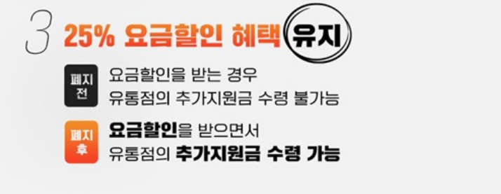 [25% 요금할인]을 받으면서도 유통점에서 추가로 제공하는 지원금을 받을 수 있게 된 것이죠.