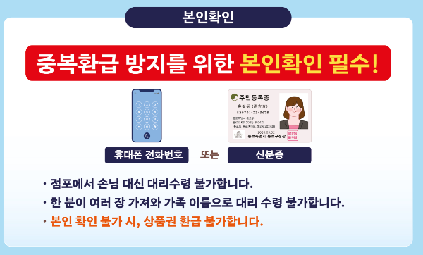 이번 환급 행사는 중복수령을 방지하기 위해 본인 확인 절차를 엄격히 시행하고 있습니다.