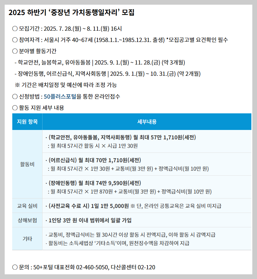 서울시가 2025년 하반기를 맞아 중장년층을 위한 좋은 일자리를 또 한 번 제공합니다.