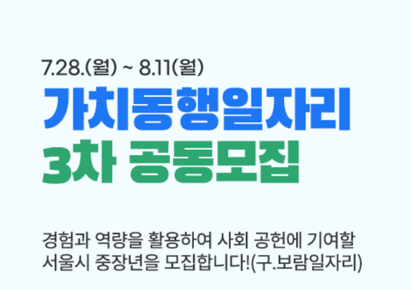 이름하여 ‘중장년 가치동행일자리’라는 이름의 서울시 대표 공공일자리입니다.
