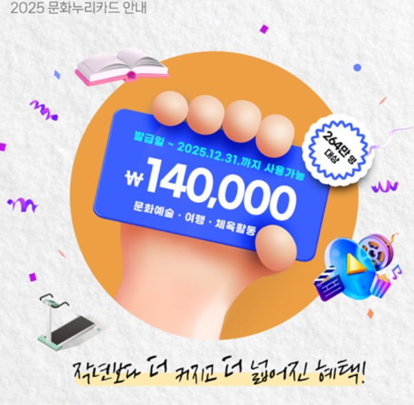 2025년도 문화누리카드는 2025년 12월 31일(수) 밤 11시 59분까지 사용할 수 있습니다.