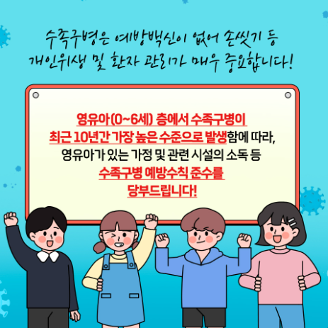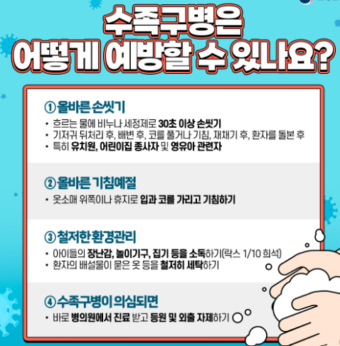 이에 따라 수족구병의 주요 증상, 감염 경로, 격리 기준, 예방법 등을 정확하게 알고,