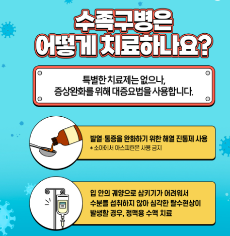 수족구병은 현재까지 명확한 치료제가 없는 자연 회복형 질환입니다.